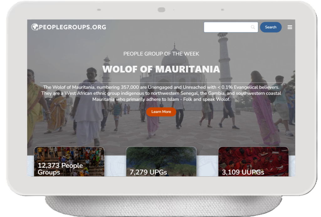 Serving the Great Commission Community, the PeopleGroups.org website provides statistical data on people groups across the globe as it relates to the gospel. To inspire and support missionary work, they provides real-time information to help users and missionary organizatons actively engage unreached people groups.